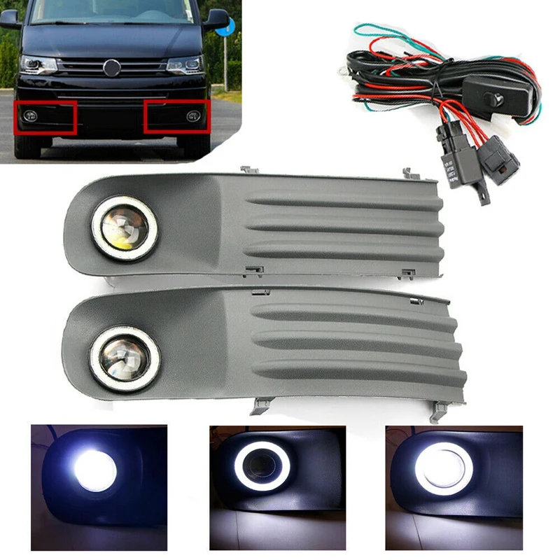 astounding Car Fog Lights Lamps Angel Eye Grilles +Harness For V w Transporter T5 T28 T30 2003-2009