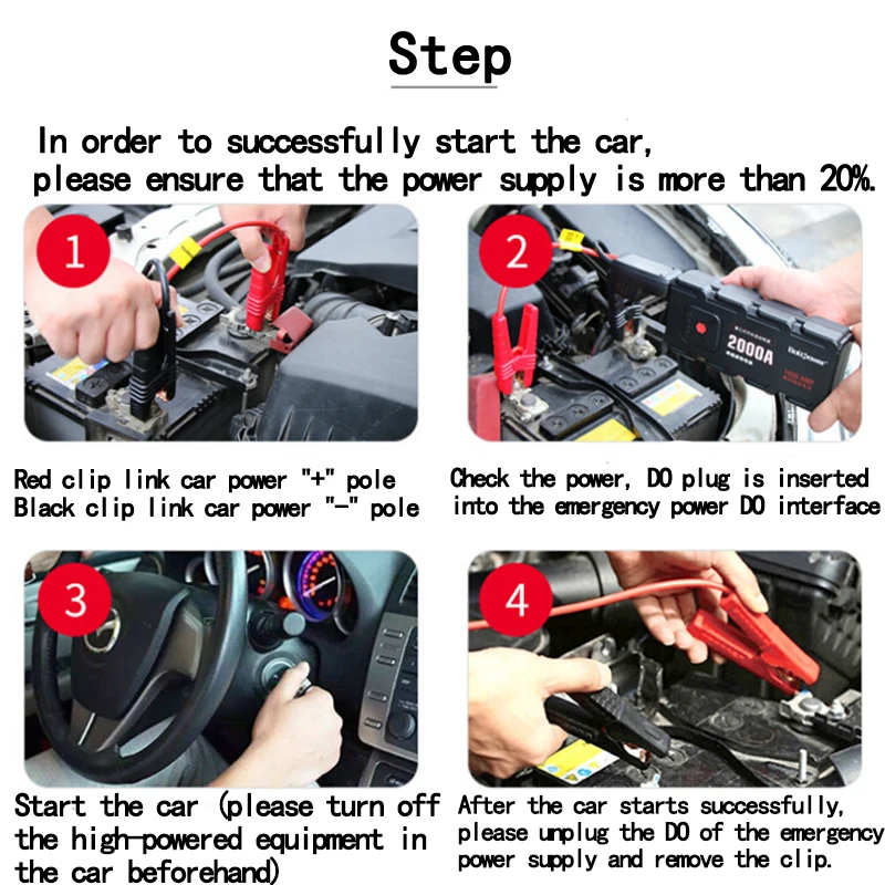 incredible 2000A Peak Car Jump Starter Pack Portable LED Flashlight Power Bank Car Boat Auto Cars Battery Supp