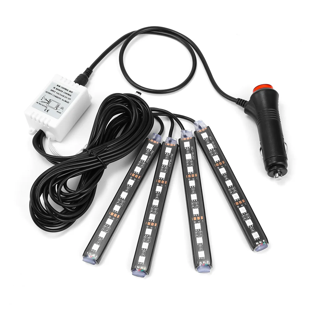 low cost 4Pcs Car RGB LED DRL Strip Light LED Strip Lights Colors Led Car Interior Light Decorative Atmosphe