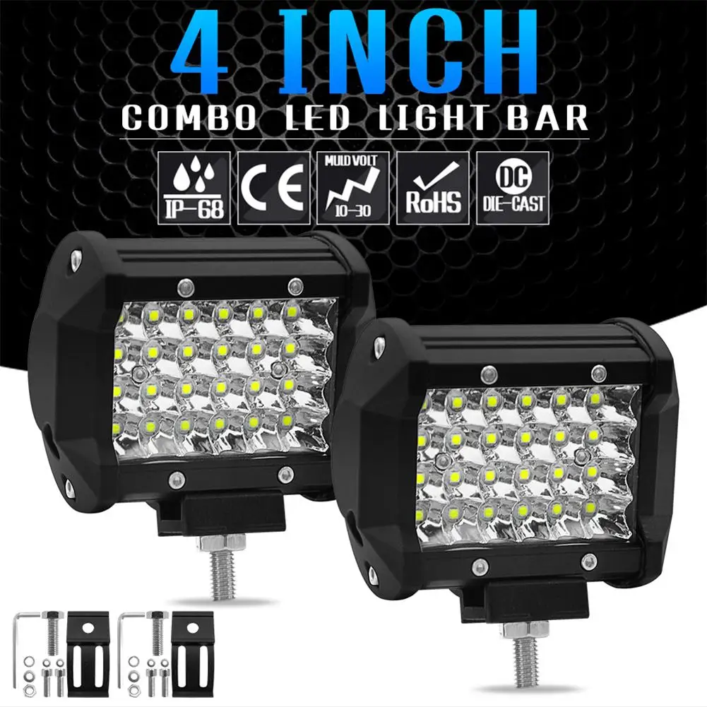 discount 2pcs/4pcs Car Bulb 4 inch 72W 4 Row LED Strip Lights Off-Car Top Refit Light Bar Working Lamp for D