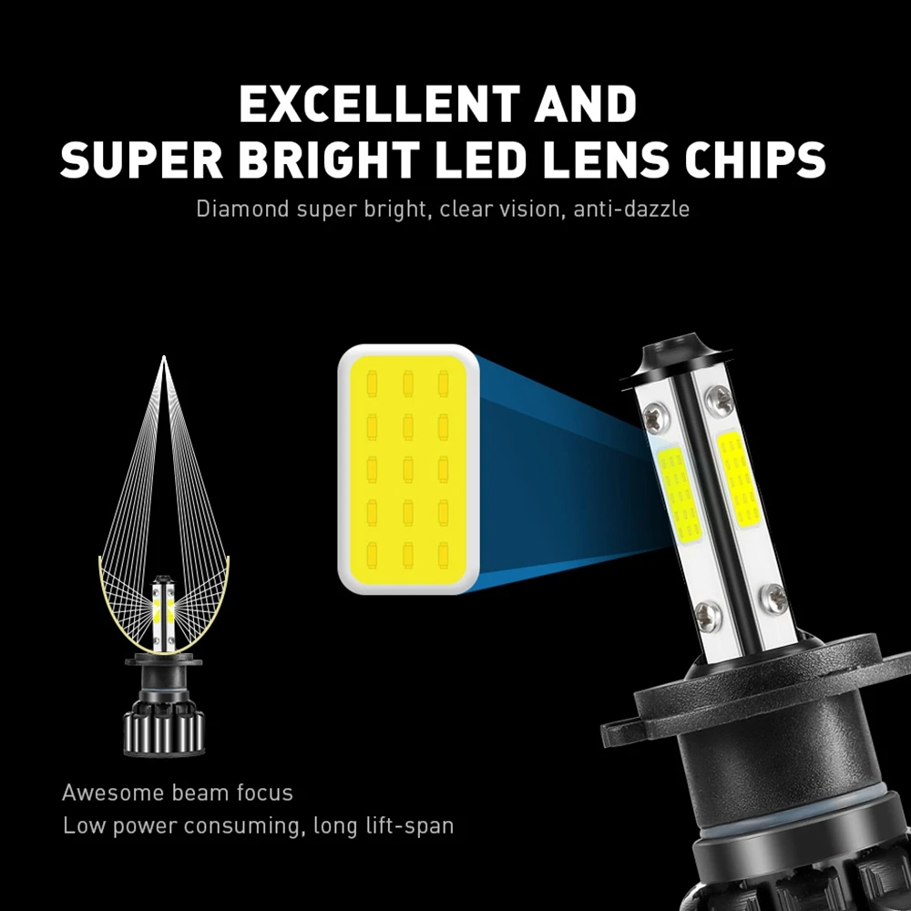 ANYHOW X6S H4 car lights h7 h8 h9 h11 hb3 COB led headlight headlamps Bulbs 6000k 8000k 6000LM led lights for auto Car Styling,4 Side Chips Car Headlight LED Fog lights 100W 8000LM H7 H4 H11 H13 5202 9012 9007 9005 9006 6000K LED Lights for Auto Headlamp, 4 Side Chips Car Headlight LED Fog lights 100W 8000LM H7 H4 H11 H13 5202 9012 9007 9005 9006 6000K LED Lights for Auto Headlamp
