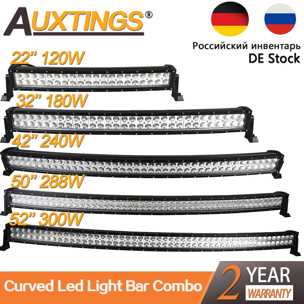 New Auxtings 21 32 42 50 52 Inch Curved Led Light Bar COMBO 120W 180W 240W 288W 300W Driving Offroad Ca
