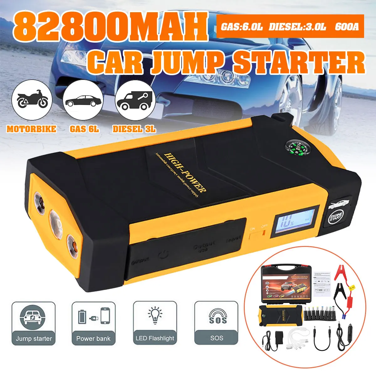 New 82800mAh Car Jump Starter Power Bank 600A Portable Car Battery Booster Charger 12V Starting Device