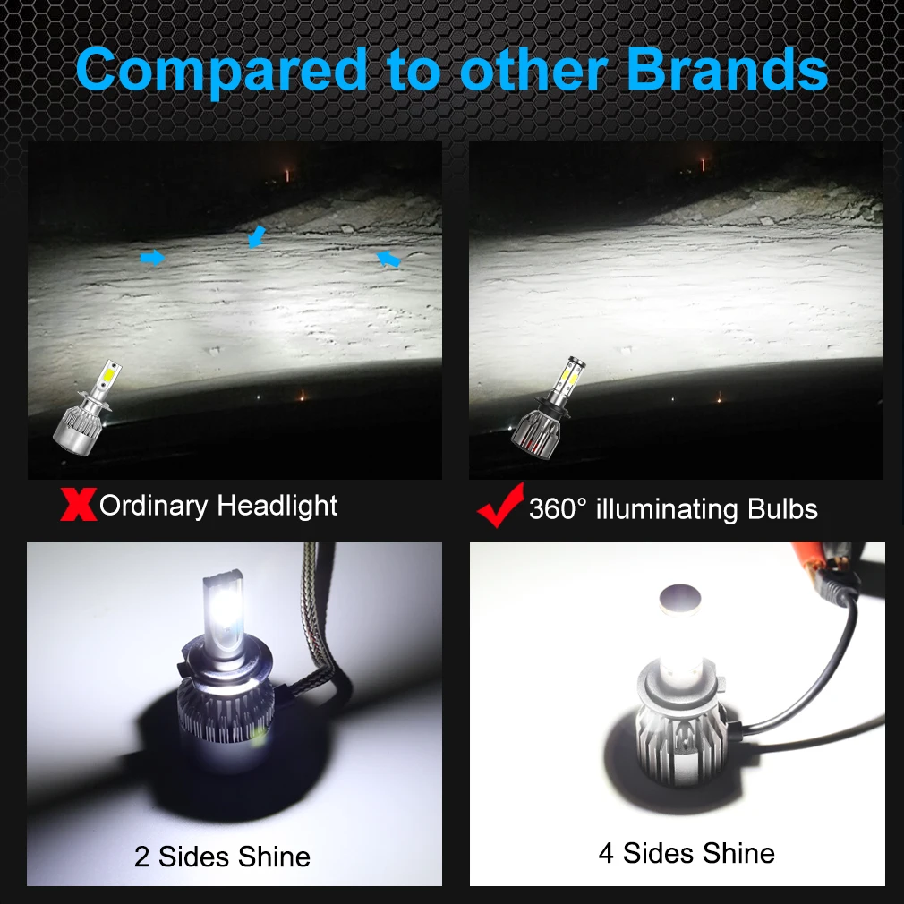remarkable 4 Sides 12000LM Car Headlight Bulbs H4 H7 Led H8 H11 HB4 Led HB3 9005 9006 12V 24V 100W 6000K Auto